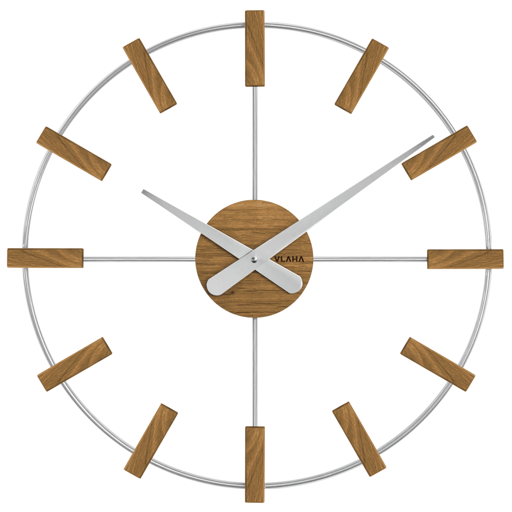 VLAHA Dřevěné stříbrné hodiny STUDIO vyrobené v Čechách ⌀50cm