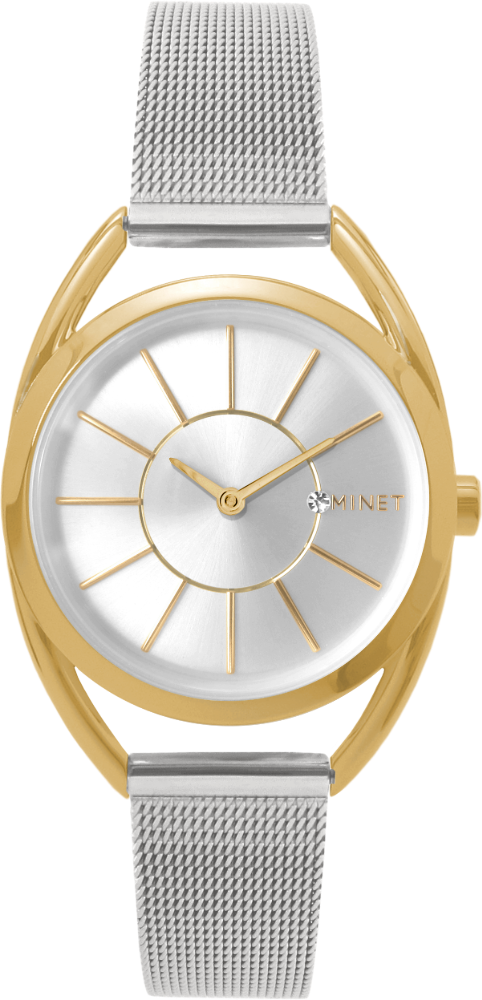 Elegantní hodinky české značky MINET ve stříbrno-zlatém provedení s moderním ocelovým řemínkem milánského typu. Vyměnitelný řemínek se snadným systémem zkracování se přizpůsobí obvodu ruky. Barva se z pouzdra hodinek díky speciální technologii nikdy neoloupe. Hodinky jsou vyrobeny z hypoalergenní nerezové oceli.