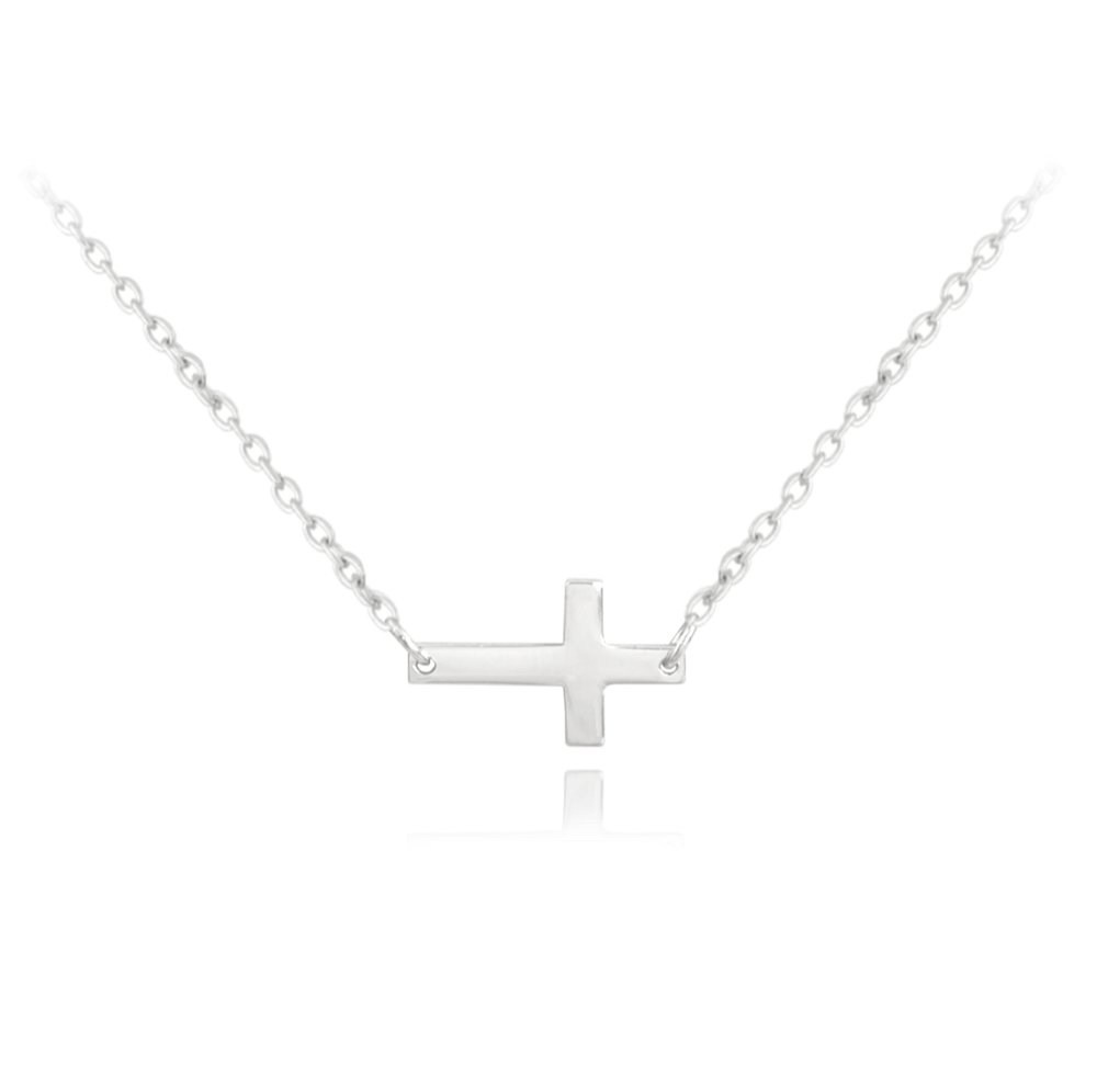 MINET Stříbrný náhrdelník drobný ležatý KŘÍŽEK