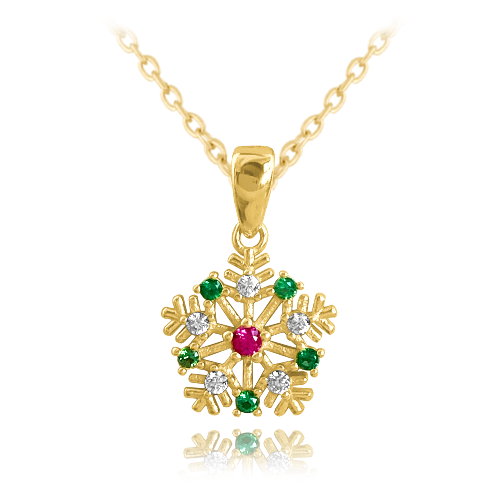 MINET Pozlacený stříbrný náhrdelník SNĚHOVÁ VLOČKA s barevnými zirkony