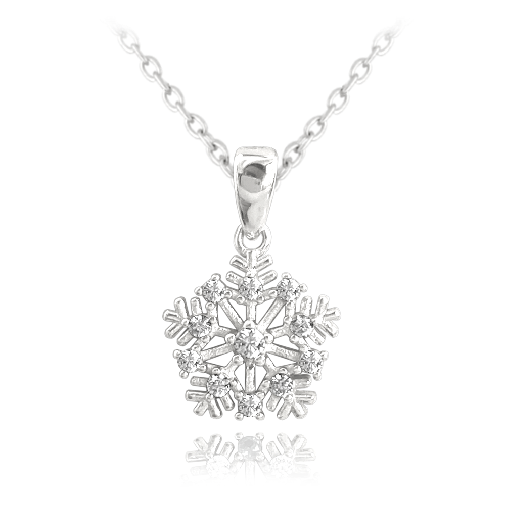 MINET Stříbrný náhrdelník SNĚHOVÁ VLOČKA s bílými zirkony