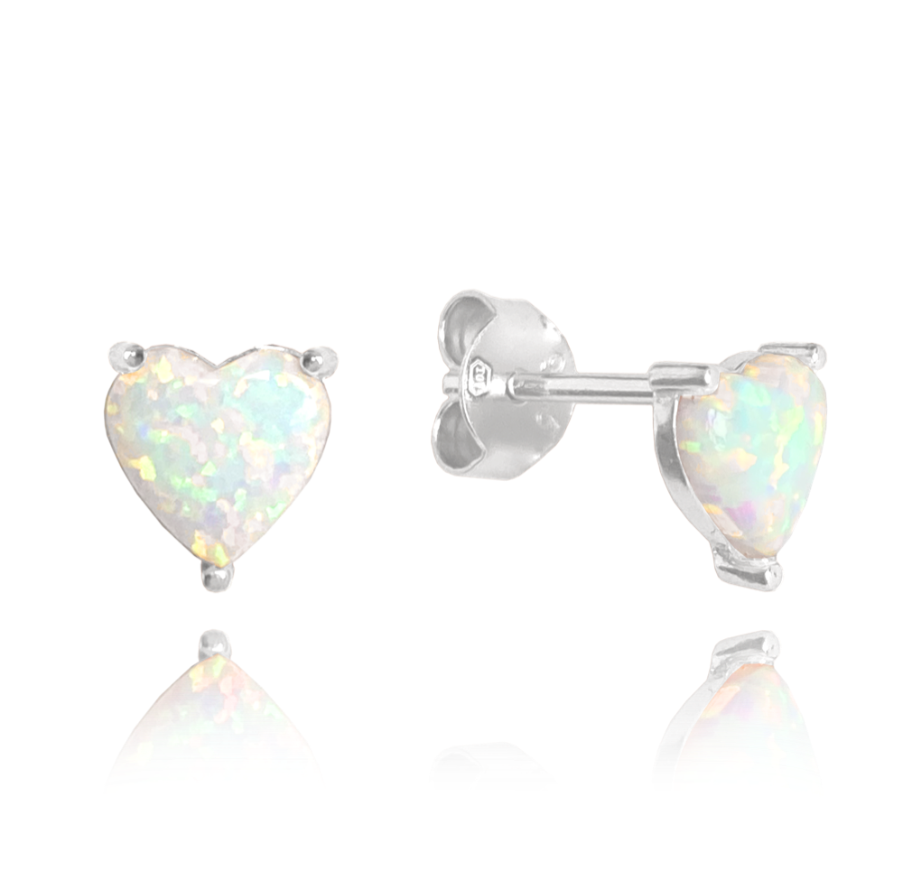 MINET Stříbrné náušnice SRDÍČKA s bílými opálky
