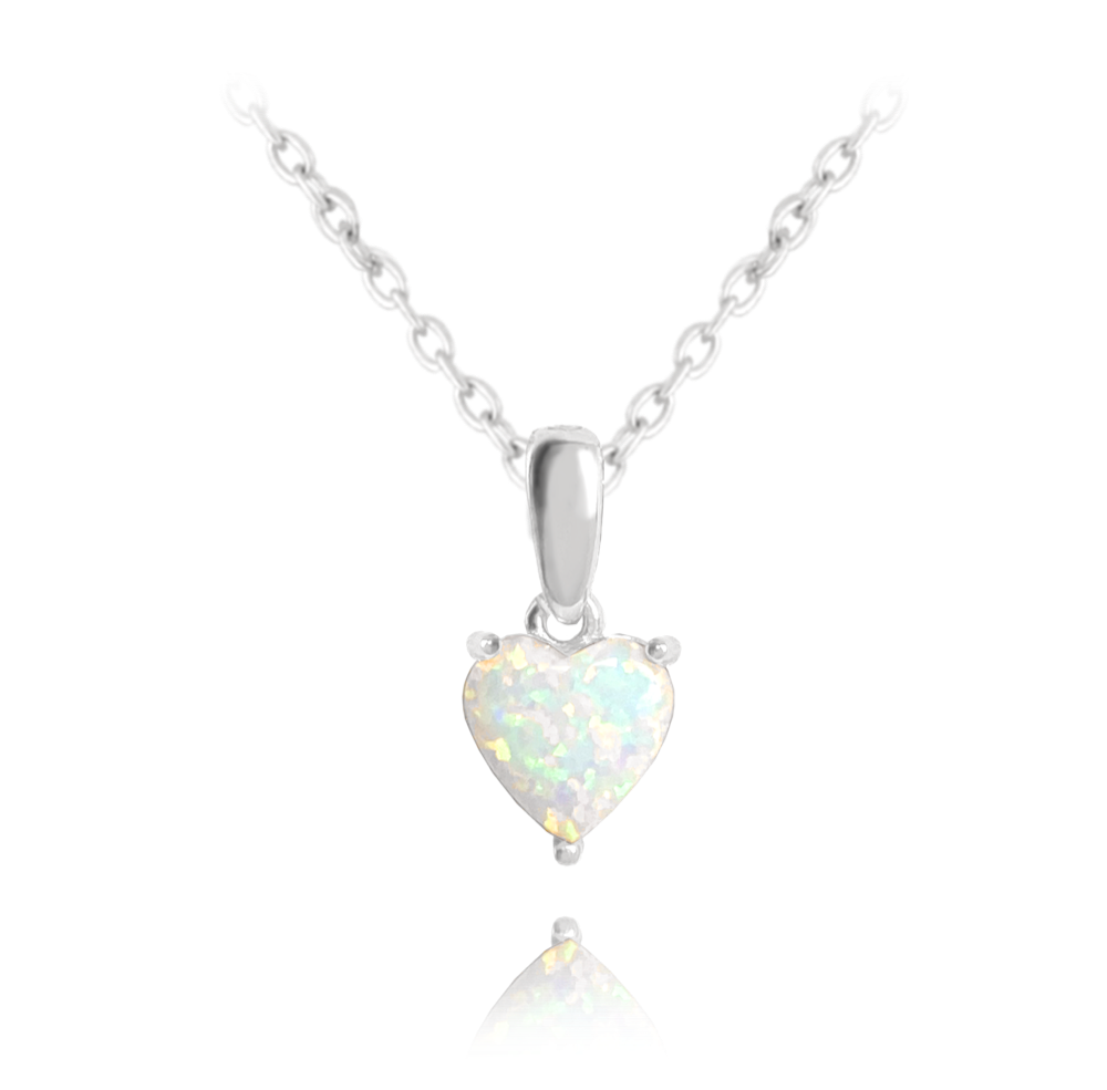 MINET Stříbrný náhrdelník SRDÍČKO s bílým opálkem