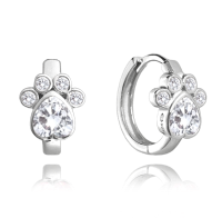 MINET Dětské stříbrné náušnice TLAPKY s bílými zirkony