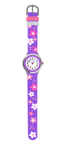 CLOCKODILE Květované fialové dívčí dětské hodinky FLOWERS se třpytkami