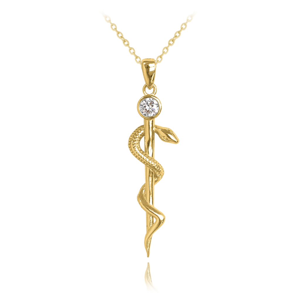 MINET Pozlacený stříbrný náhrdelník AESKULAPOVA HŮL s bílým zirkonem