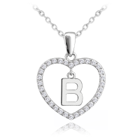 MINET Stříbrný náhrdelník písmeno v srdíčku "B" se zirkony