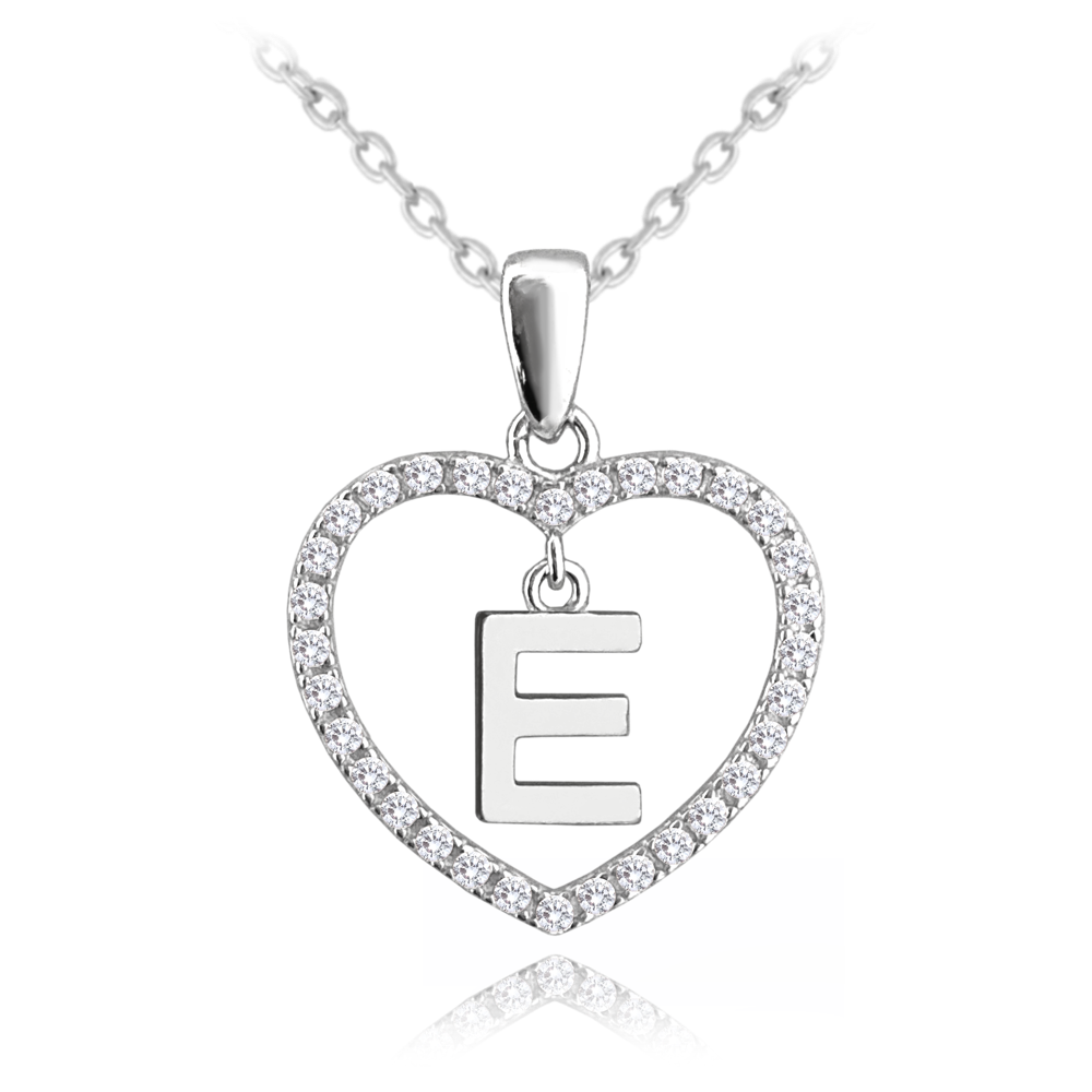 MINET Stříbrný náhrdelník písmeno v srdíčku "E" se zirkony