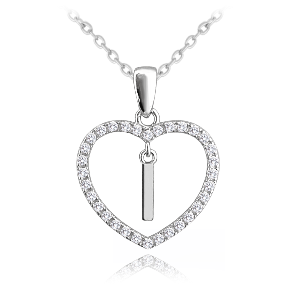 MINET Stříbrný náhrdelník písmeno v srdíčku "I" se zirkony