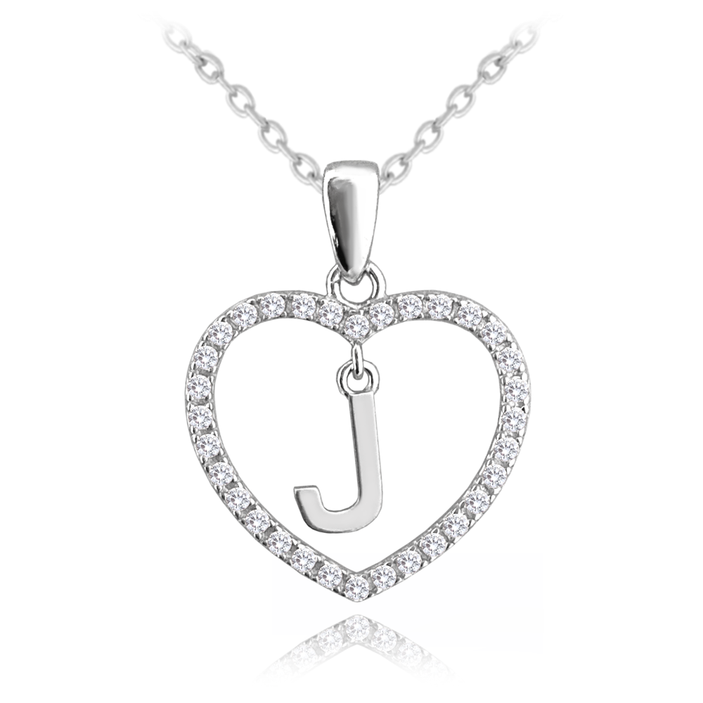 MINET Stříbrný náhrdelník písmeno v srdíčku "J" se zirkony