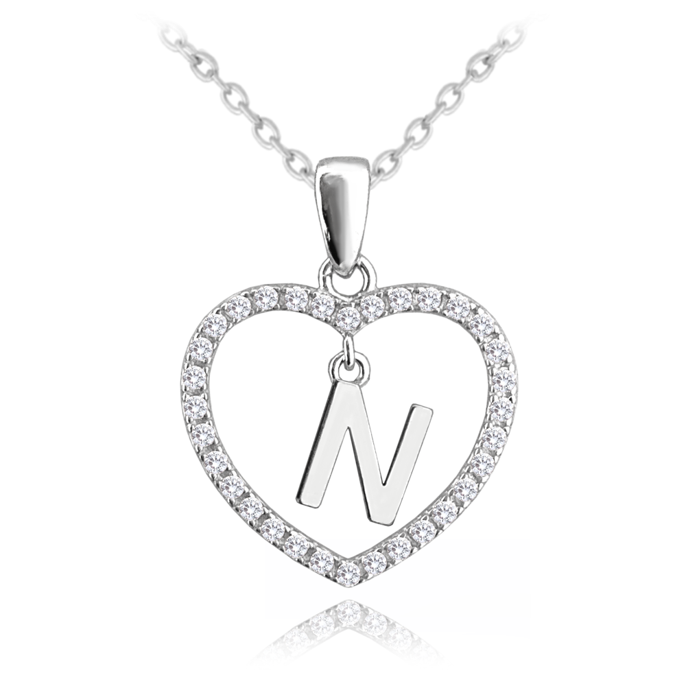 MINET Stříbrný náhrdelník písmeno v srdíčku "N" se zirkony