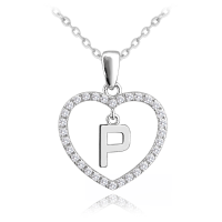 MINET Stříbrný náhrdelník písmeno v srdíčku "P" se zirkony