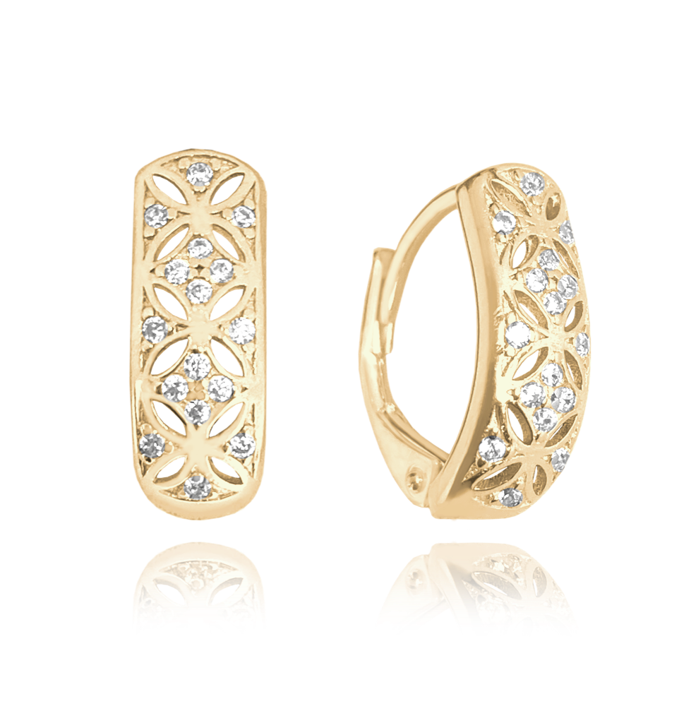 MINET Pozlacené luxusní stříbrné náušnice s bílými zirkony