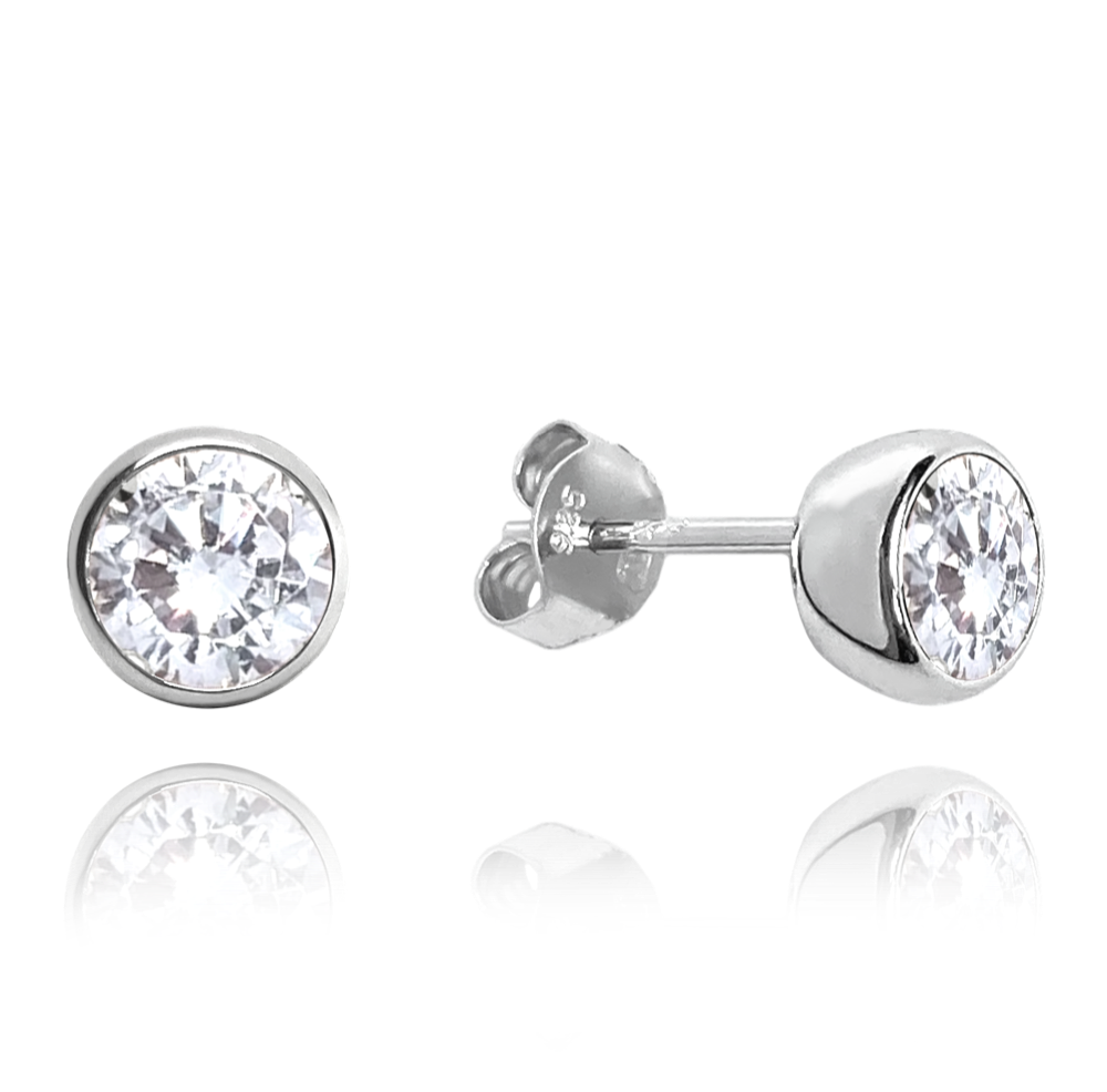 MINET Stříbrné náušnice PECKY s bílými zirkony