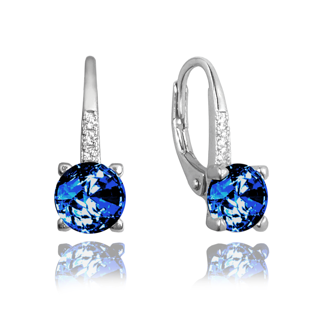 MINET Elegantní stříbrné náušnice s tmavě modrým zirkonem