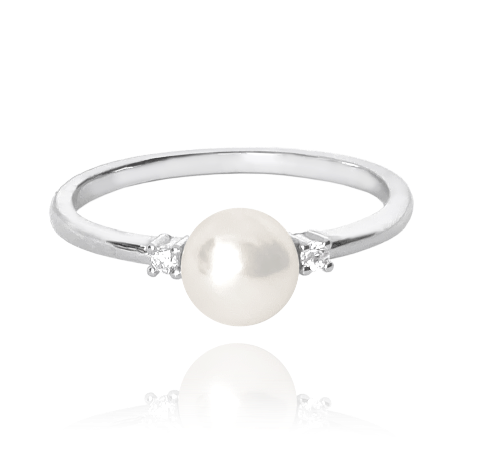 MINET Stříbrný prsten s perlou a bílými zirkony vel. 50