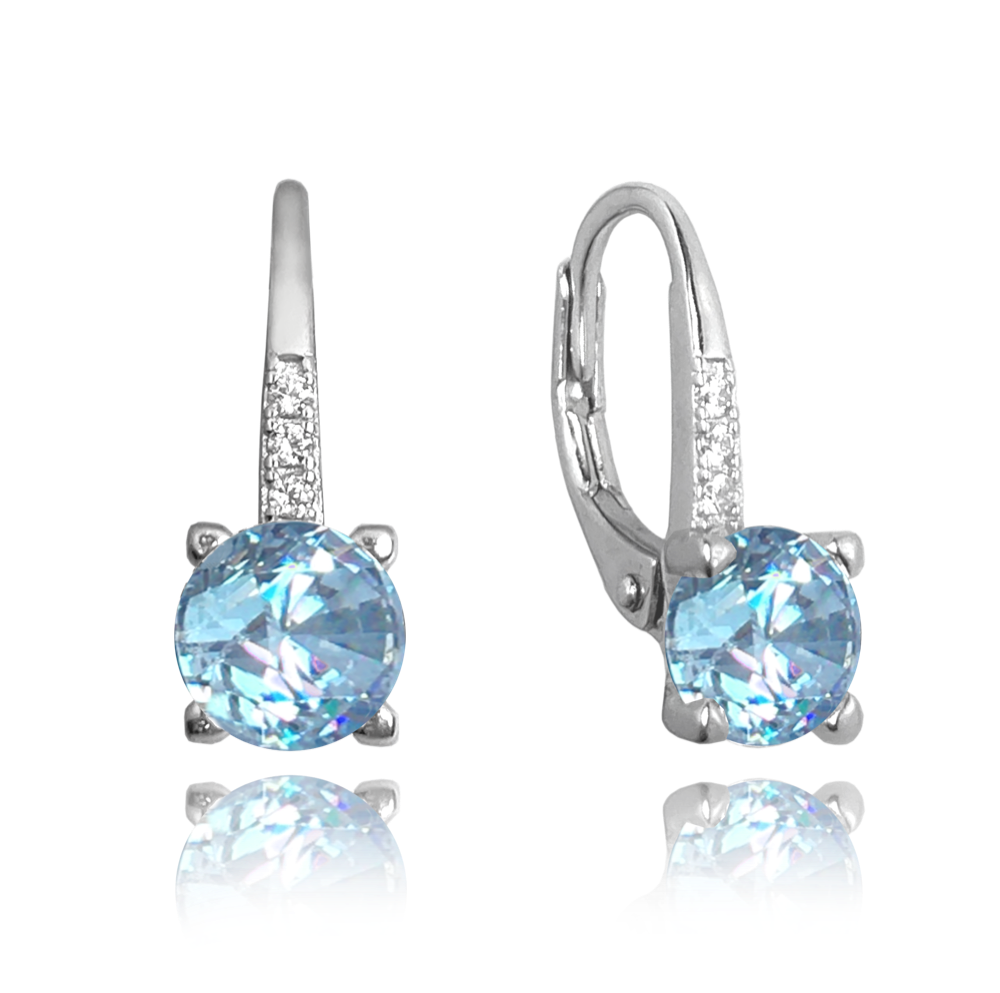 MINET Elegantní stříbrné náušnice se světle modrým zirkonem