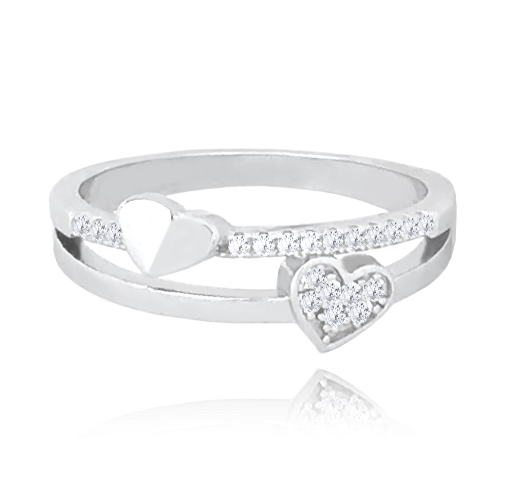 MINET Stříbrný srdíčkový prsten LOVE se zirkony vel. 58