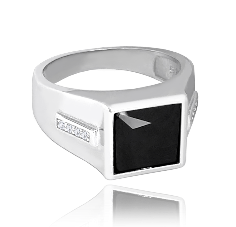 MINET Pánský pečetní stříbrný prsten s černým zirkonem vel. 66