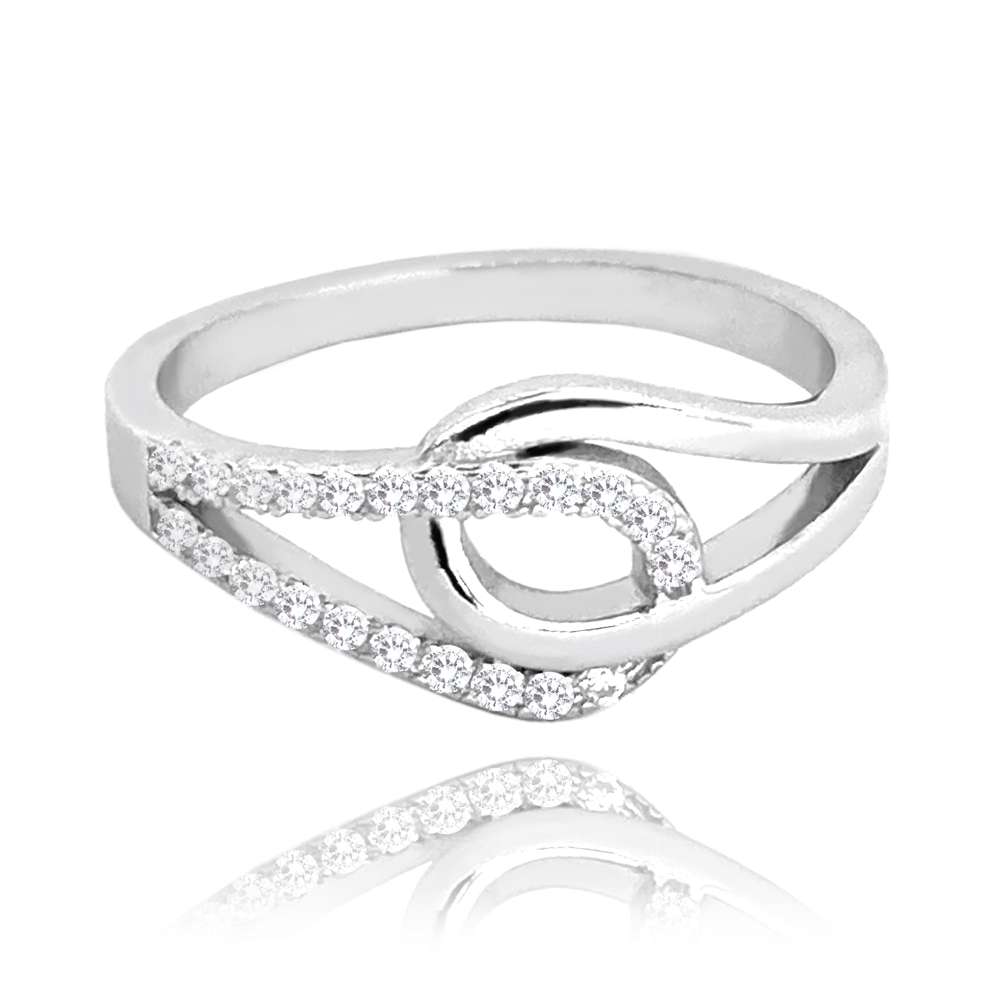 MINET Propletený stříbrný prsten se zirkony vel. 63