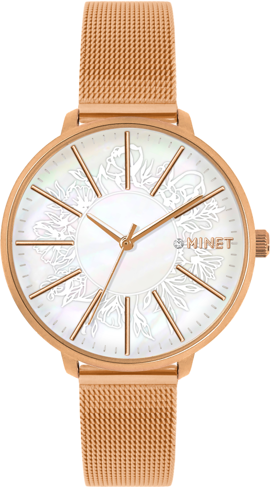 MINET Rose gold dámské hodinky PRAGUE MESH
