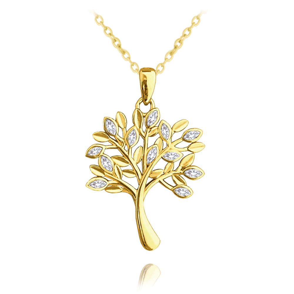 MINET Pozlacený stříbrný náhrdelník STROM ŽIVOTA s bílými zirkony