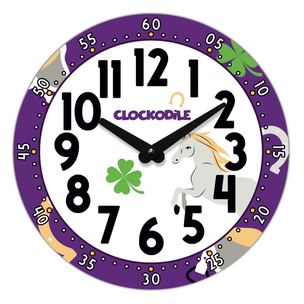 CLOCKODILE Dětské nástěnné hodiny fialové s koněm ⌀25cm