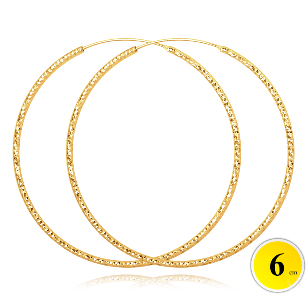 MINET Pozlacené broušené stříbrné náušnice KRUHY 6 cm