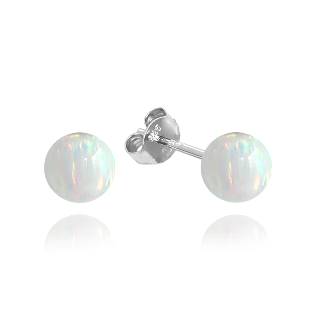 MINET Stříbrné náušnice KULIČKY s bílými opálky 6mm