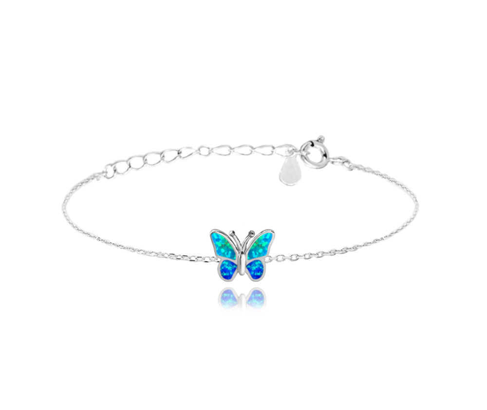 MINET Třpytivý dětský stříbrný náramek MOTÝLEK s modrým opálem