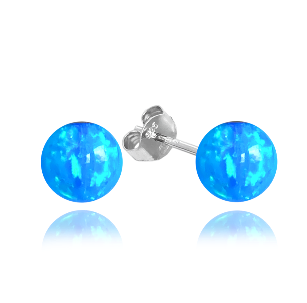 MINET Stříbrné náušnice KULIČKY se světle modrými opálky 8mm