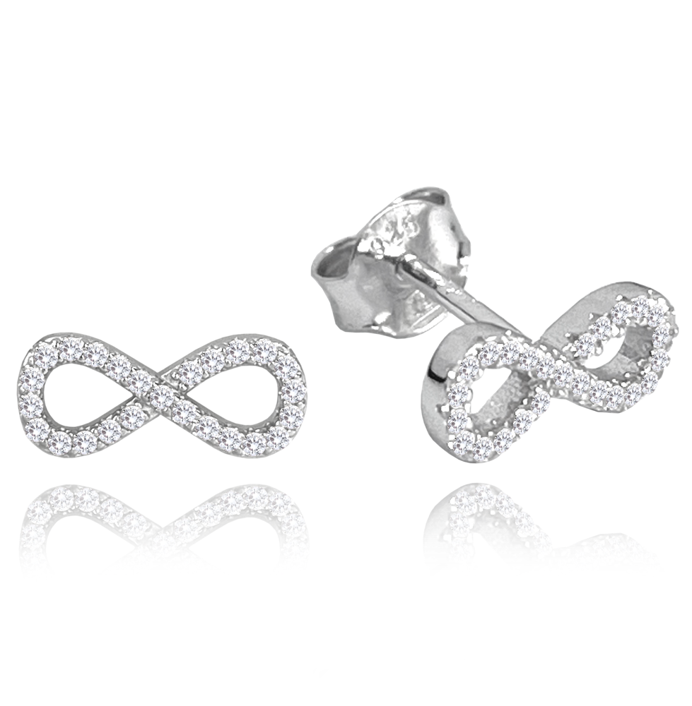 MINET Stříbrné náušnice NEKONEČNO s bílými zirkony