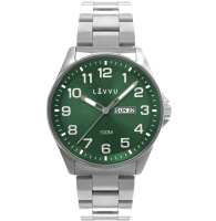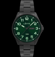 LAVVU Ocelové pánské hodinky BERGEN Green se svítícími čísly