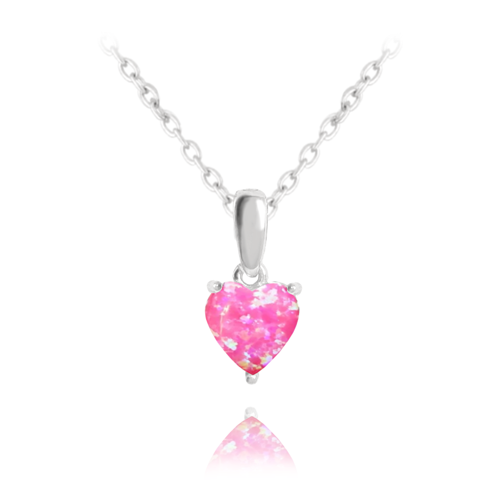 MINET Stříbrný náhrdelník SRDÍČKO s růžovým opálkem