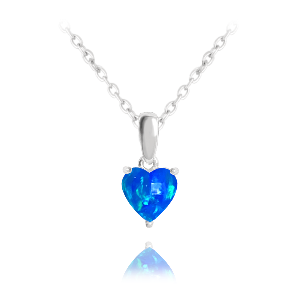 MINET Stříbrný náhrdelník SRDÍČKO s modrým opálkem