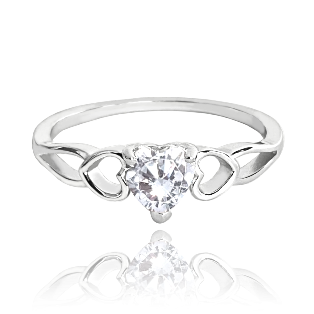 MINET Stříbrný prsten LOVE s bilým srdíčkovým zirkonem vel. 51