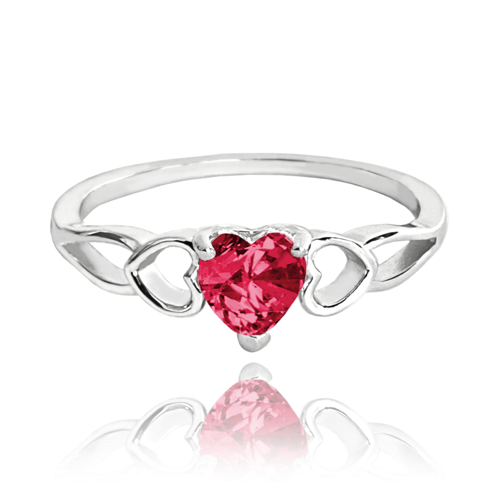MINET Stříbrný prsten LOVE s červeným srdíčkovým zirkonem vel. 51