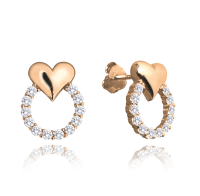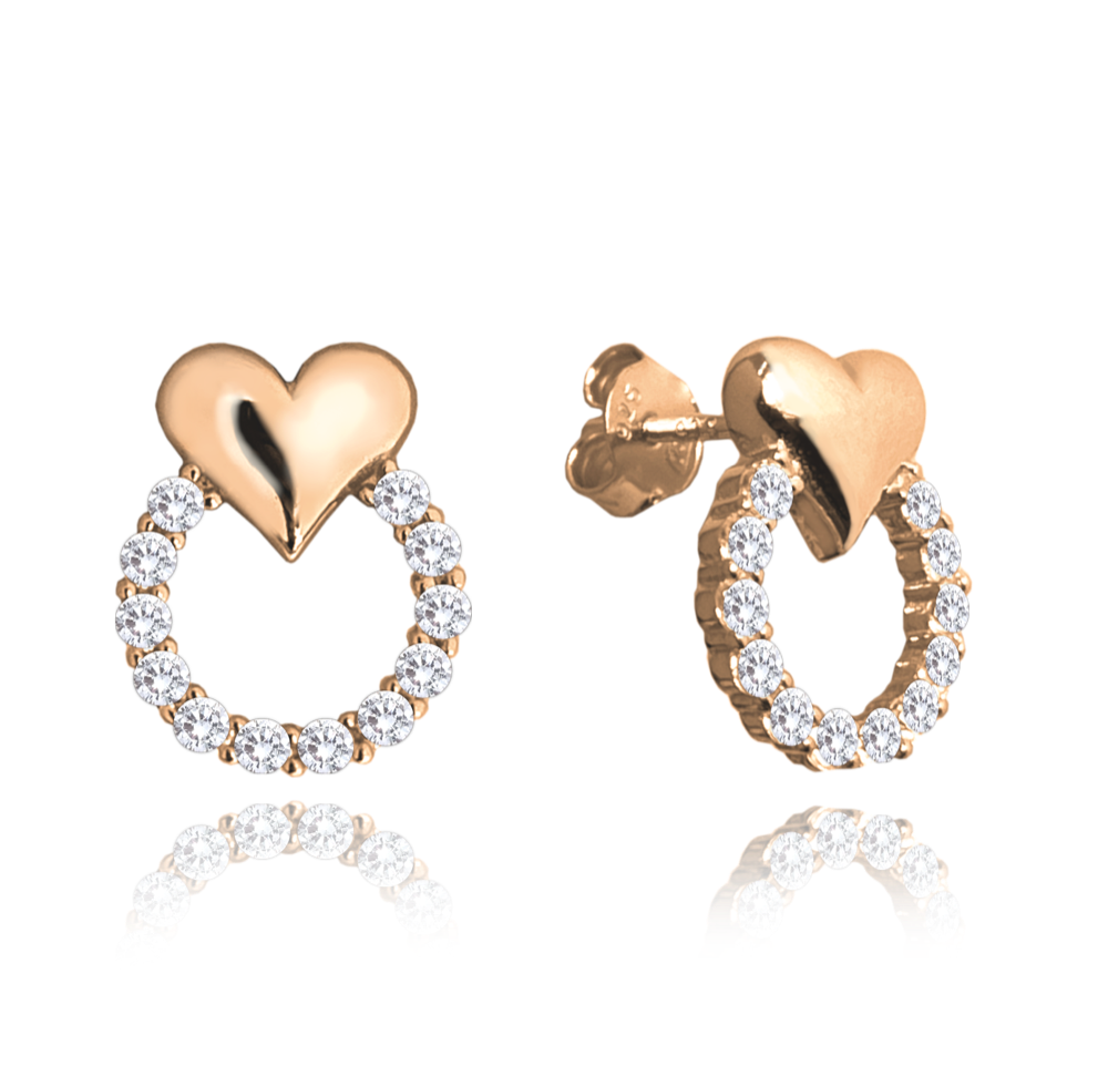 MINET Rose gold stříbrné náušnice se srdíčky LOVE s bílými zirkony