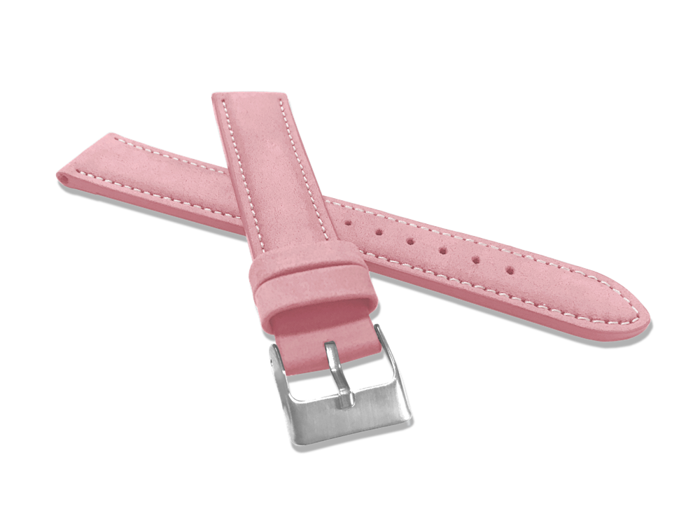 MINET Růžový prošitý kožený řemínek z jemného nubuku - 18