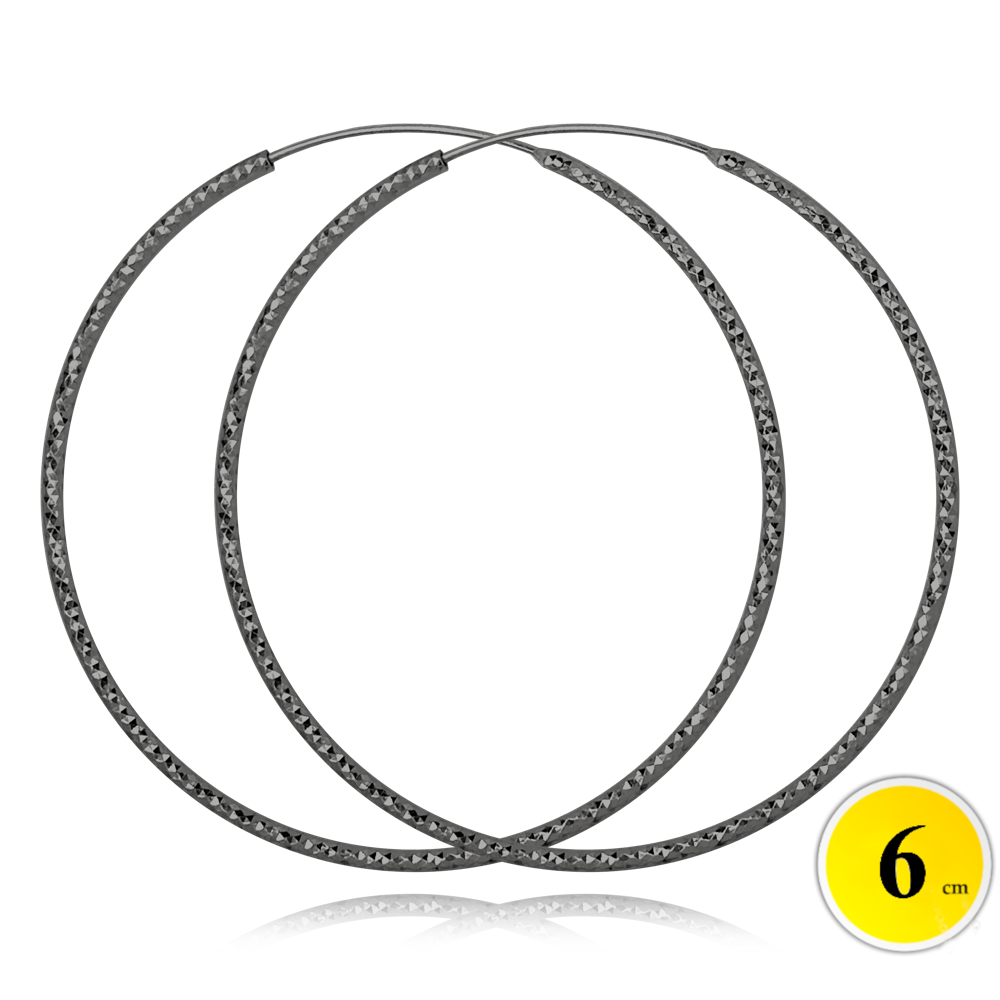 MINET Černé broušené stříbrné náušnice KRUHY 6 cm