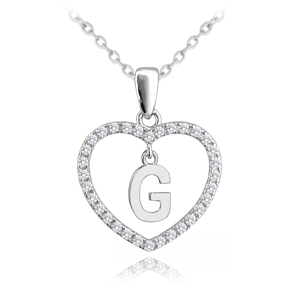 MINET Stříbrný náhrdelník písmeno v srdíčku "G" se zirkony