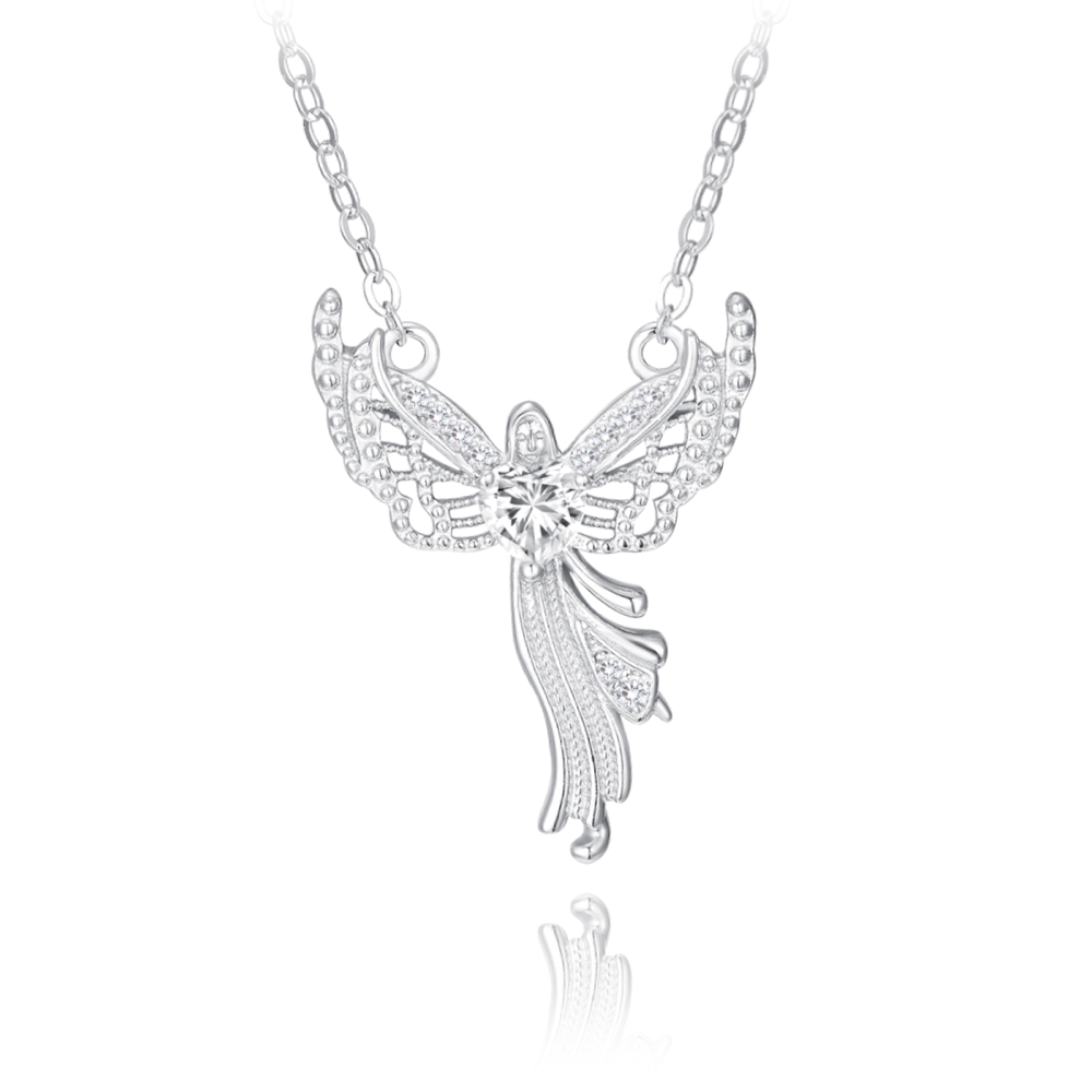MINET Stříbrný náhrdelník ANDĚL se zirkony