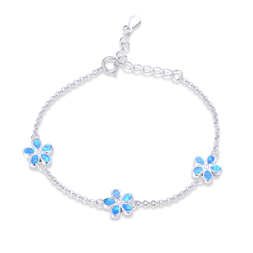 MINET Dětský stříbrný náramek KYTIČKY s modrými opálky