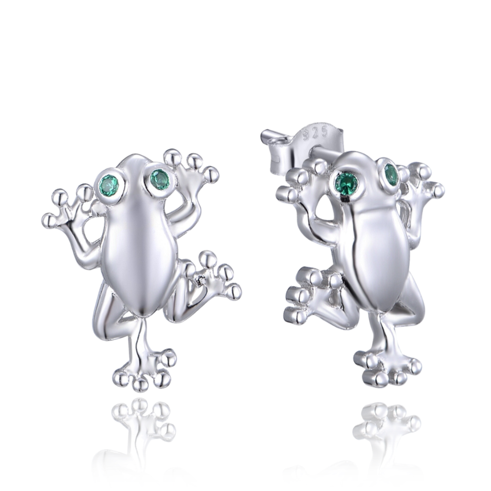 MINET Stříbrné náušnice ŽABKY s bílými zirkony
