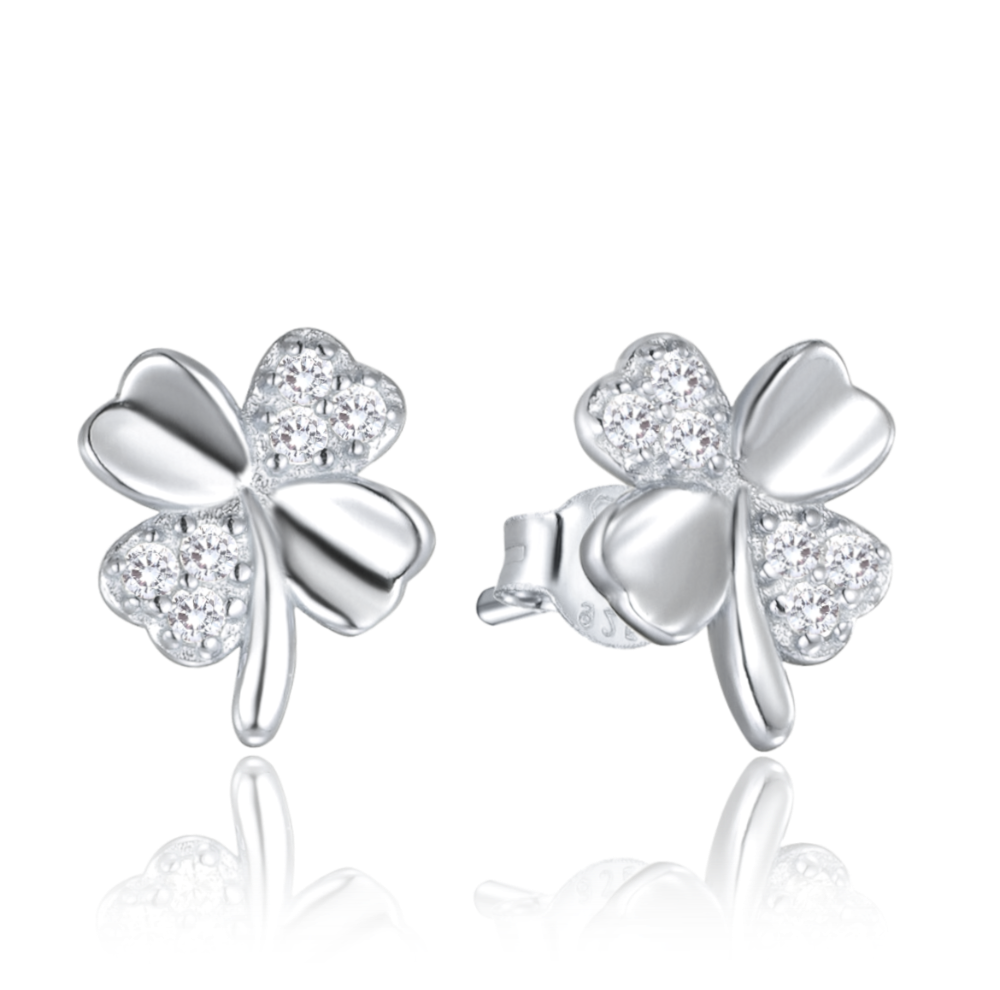 MINET Stříbrné náušnice ČTYŘLÍSTKY s bílými zirkony