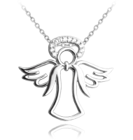 Stříbrný náhrdelník s andílkem zaujme svou svatozáří s kamínky. Jednoduché linie dodávají tomuto šperku nevšední šmrnc.
