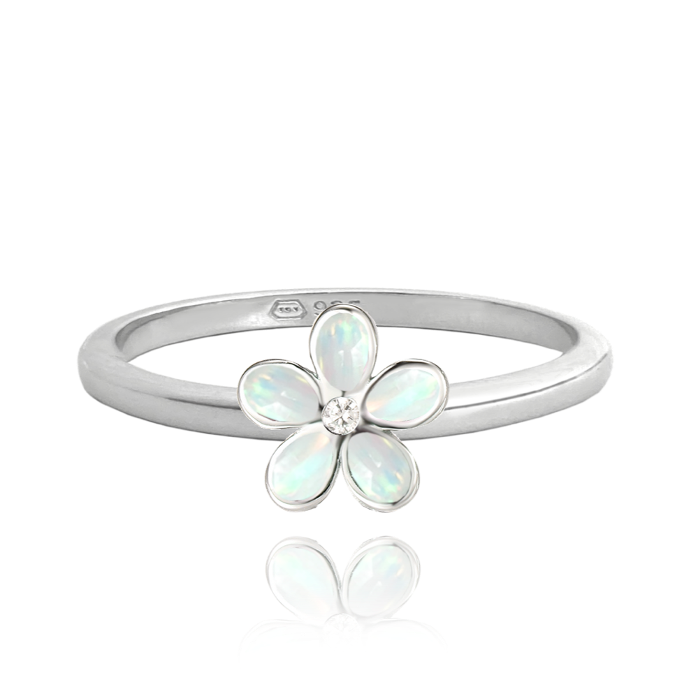 MINET Dětský stříbrný prsten KYTIČKY s bílými opálky vel. 56