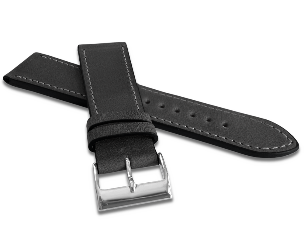 LAVVU Tmavě šedý prošitý řemínek Slim z luxusní kůže Top Grain - 24