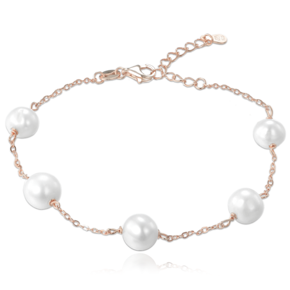 MINET Rose gold stříbrný náramek s přírodními perlami