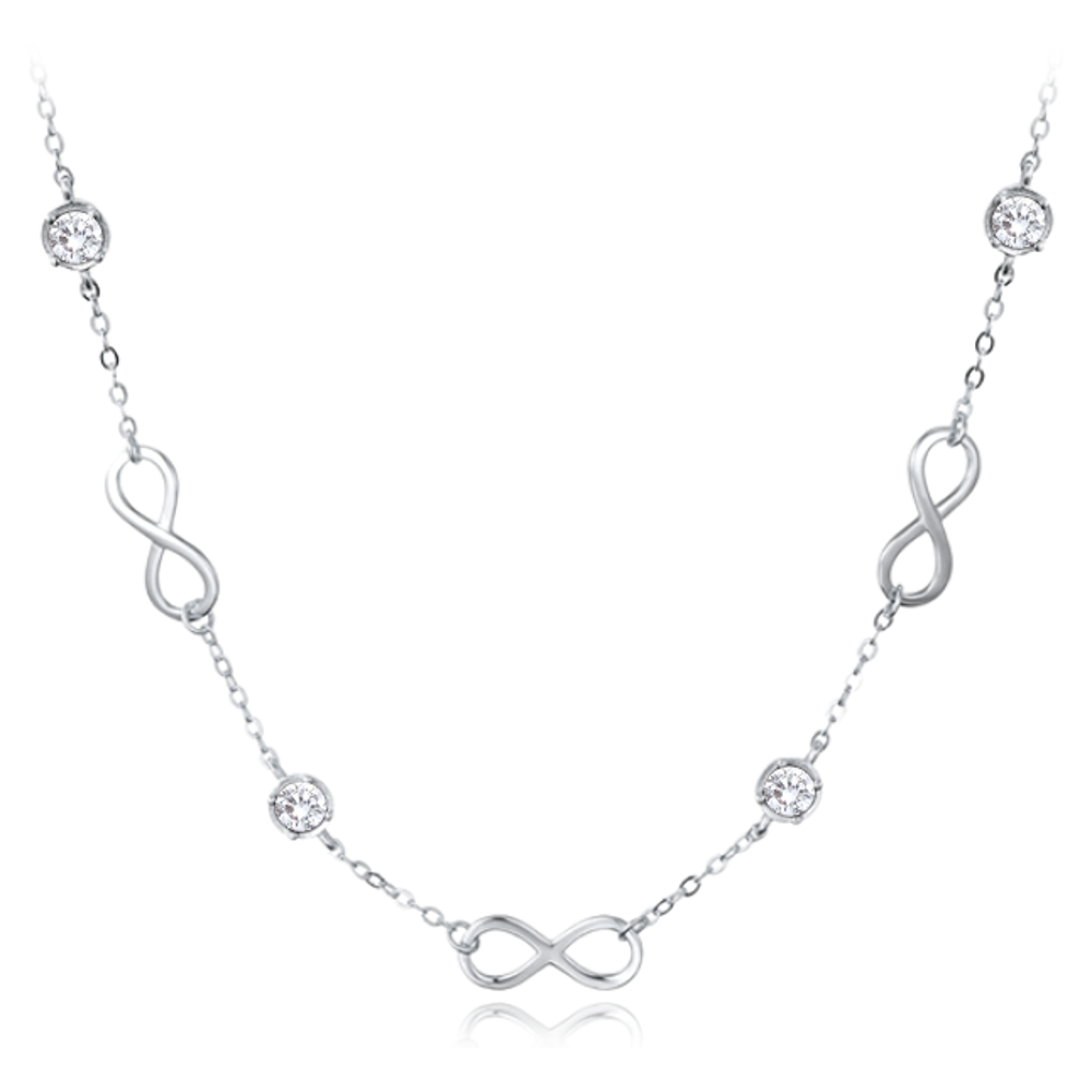 MINET Stříbrný náhrdelník nekonečno s bílými zirkony